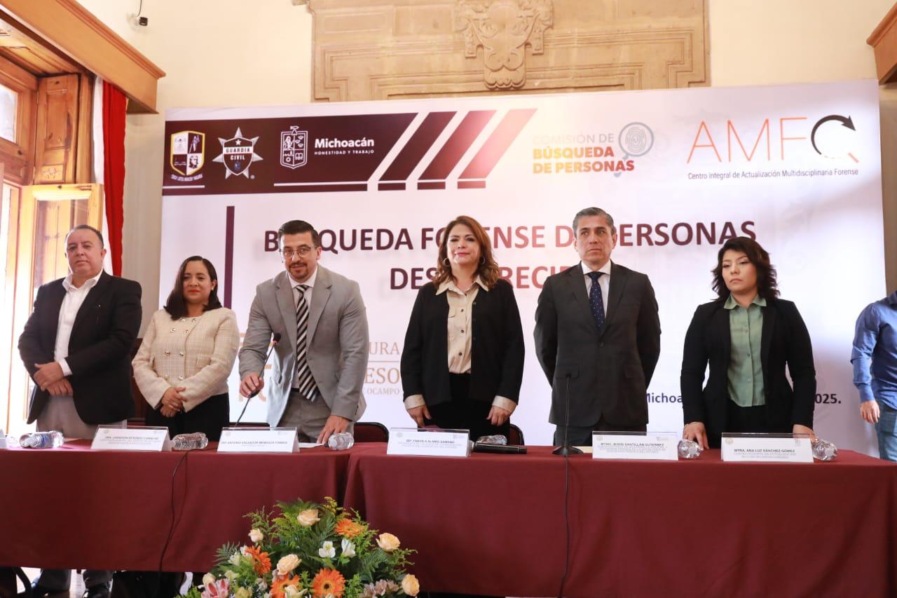 En este foro también estuvo presente el diputado Antonio Salvador Mendoza Torres; Jesús Santillán Gutiérrez, subsecretario de Desarrollo Policial y Seguridad Privada de la Secretaría de Seguridad Pública; Jarintizin Reséndiz Camacho, directora general del Centro de Estudios Universitarios e Investigación; y, José Alfredo Tapia Navarrete, titular de la Comisión de Búsqueda de Personas del Estado de Michoacán.