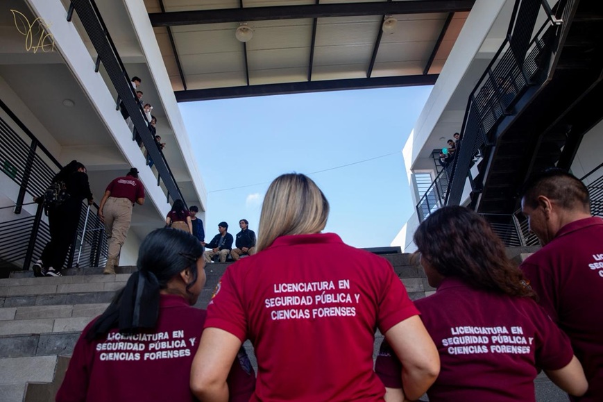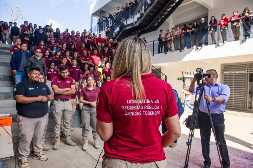 Acompañada del director de la EESI, Julio César Sánchez, reconoció el apoyo que se recibe por parte de las alumnas y alumnos de Seguridad Pública y Ciencias Forenses en los distintos eventos, y consideró que se necesita mucho valor y ética para estudiar esta licenciatura.
