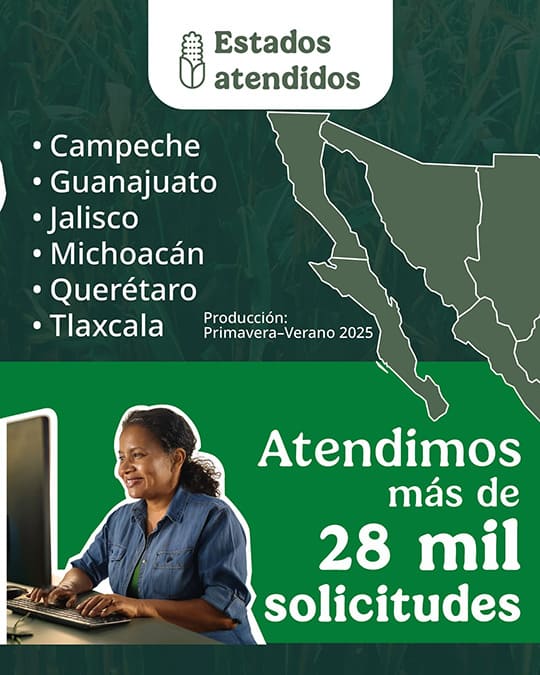 La Secretaría de Agricultura y Desarrollo Rural (AGRICULTURA) informó que en los estados de Campeche, Guanajuato, Jalisco, Michoacán, Querétaro y Tlaxcala se han realizado 25 mil 702 pagos como parte del incentivo a la producción de maíz blanco, correspondiente al ciclo Primavera-Verano 2025.