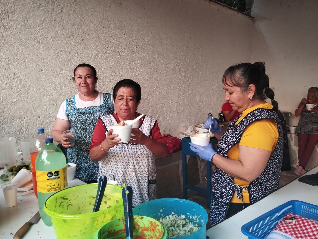 El encargado de encabezar el recibimiento y la verbena fue el párroco Alfredo Gallegos, popularmente conocido como el “Padre Pistolas”. El sacerdote no escatimó en atenciones, ofreciendo a los caminantes un festín que incluyó desde carnitas donadas por él mismo, hasta elotes, corundas, birria y pozole.