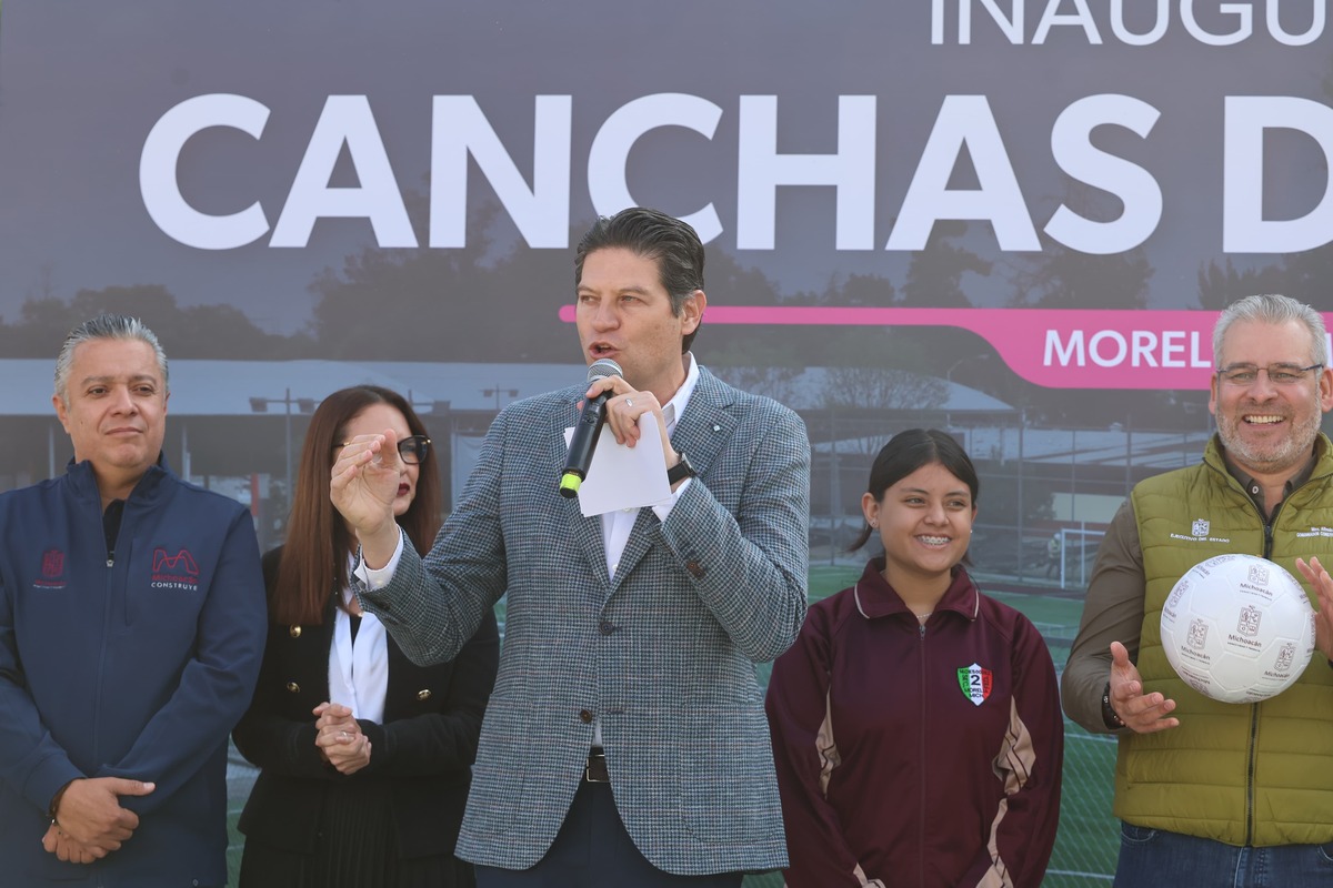 El deporte es una de las principales actividades para construir la paz e impulsar a los jóvenes, refrendó el presidente municipal de Morelia, Alfonso Martínez Alcázar, al asistir a la inauguración de las canchas de Fútbol 7 en la Escuela Secundaria Federal Número 2 “Hermanos Flores Magón”.