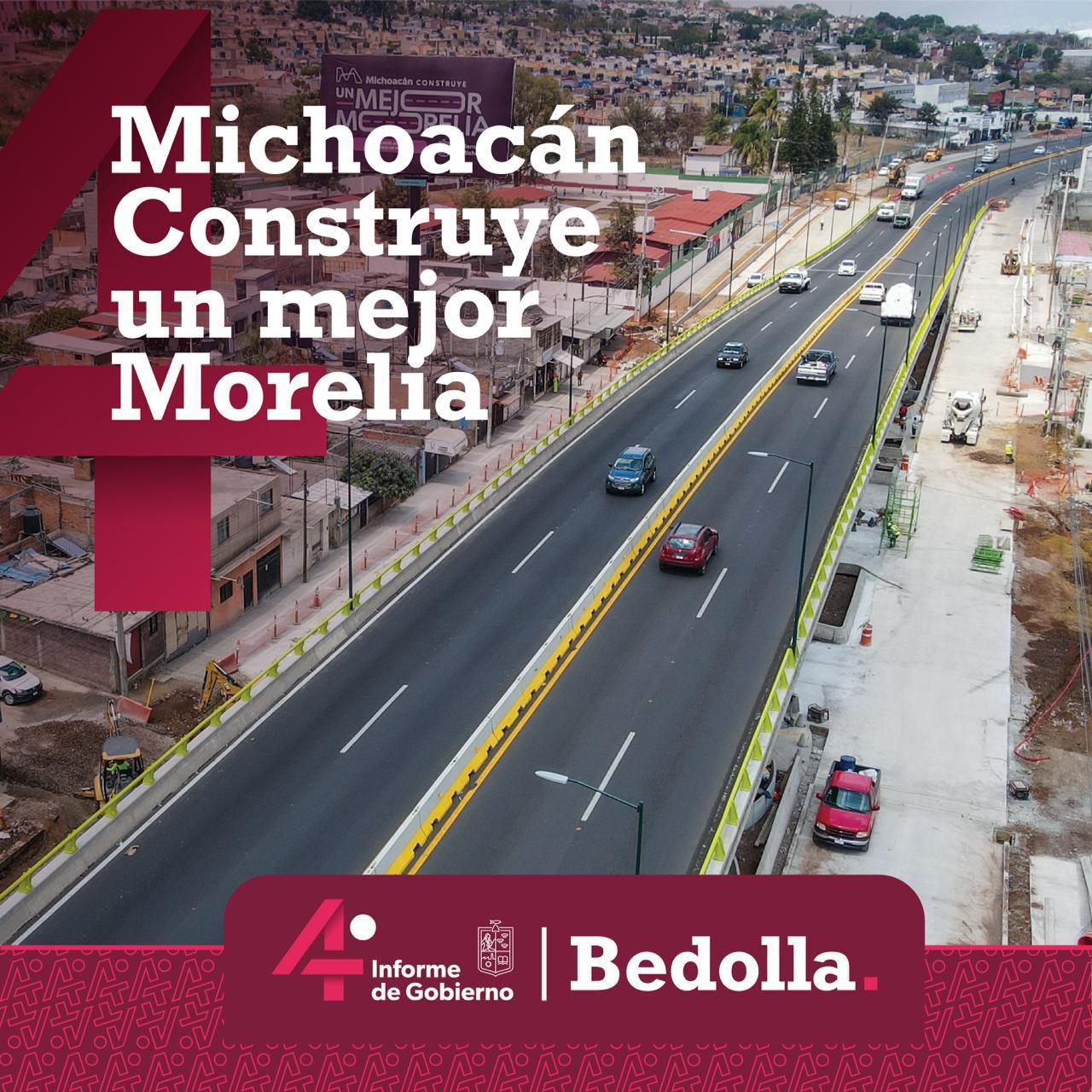 En la capital, Morelia, se construye el segundo anillo periférico de 87.8 kilómetros, un proyecto que triplicará la extensión del actual y busca rodear toda la ciudad. Los trabajos se realizan en tres de sus siete segmentos con una inversión de 2 mil 596 millones de pesos.