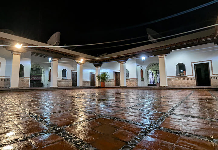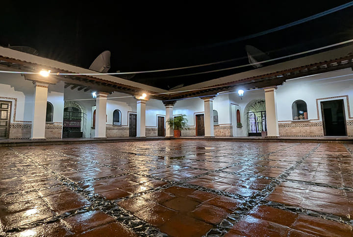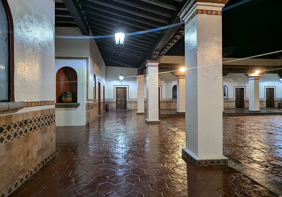 Se hizo un estudio previo con el INAH para el cambio de algunas viguerías, la modernización de la iluminación y con el mismo farol, se instalaron lámparas LED, y restauración de baldosas y tejas, todo ello, buscando que sea un lugar confortable, pero sin perder su esencia y valor colonial.