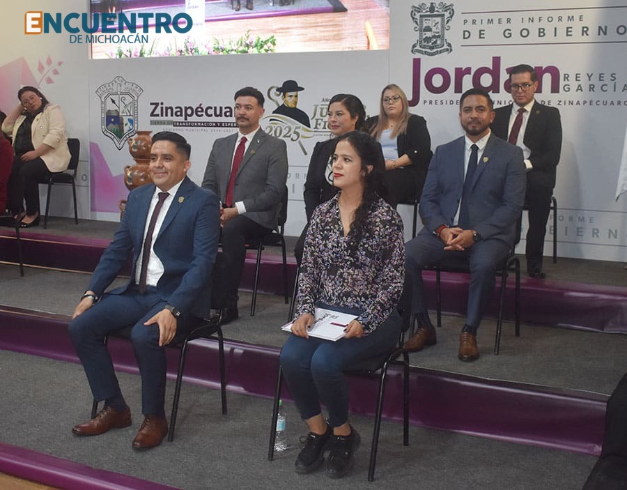 Al Primer Informe de Gobierno de Jordan Reyes García acudió Tamara Sosa, titular de la Secretaría de Cultura y representante del gobernador Alfredo Ramírez Bedolla, además de las diputadas locales Belinda Hurtado y Jaqueline Avilés, además de la síndica municipal Eréndira Caballero; el secretario municipal Enrique Mendoza; el oficial mayor, Fernando Herrera; y el contralor José Heriberto Heredia, además de los regidores integrantes del Cabildo de Zinapécuaro.