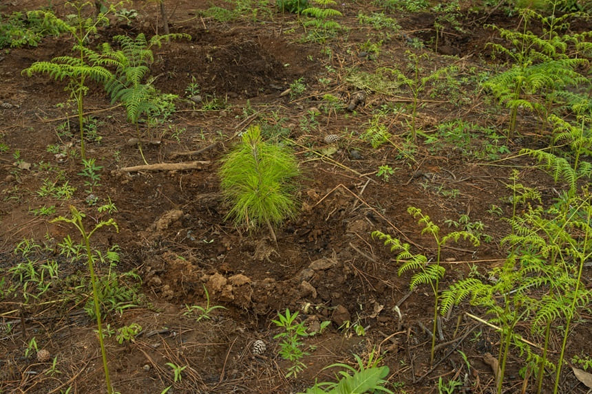 Durante la visita, se evaluó cómo aprovechar los beneficios de las arvenses plantas que crecen de manera natural, ya que ayudan a retener humedad, prevenir erosión e incrementar la materia orgánica del suelo. Además, también se definieron acciones concretas para evitar riesgos durante la temporada de estiaje, como la construcción de cajetes de protección de 80 cm, limpieza del área alrededor de cada pino, eliminación de exceso de tierra en la base y evitar el uso de herbicidas.