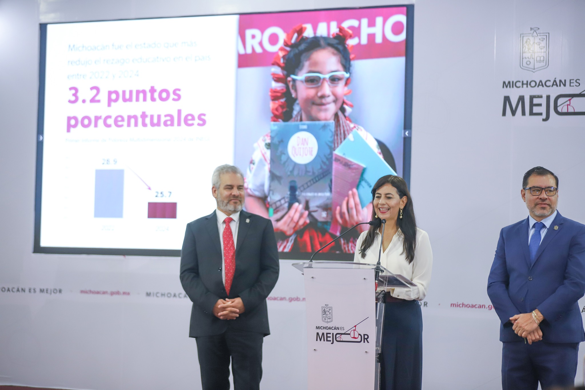 El gobernador Alfredo Ramírez Bedolla celebró la recuperación del rumbo educativo del estado. “Michoacán estaba sin brújula desde hace 20 o 25 años, estaba en control de los grupos de interés sindicales y los afectados eran los niños”, comentó. Resaltó el esfuerzo conjunto que ha permitido sacar a casi 160 mil niños y jóvenes del rezago educativo, lo que convierte a Michoacán en el estado con mayor avance en esta materia.