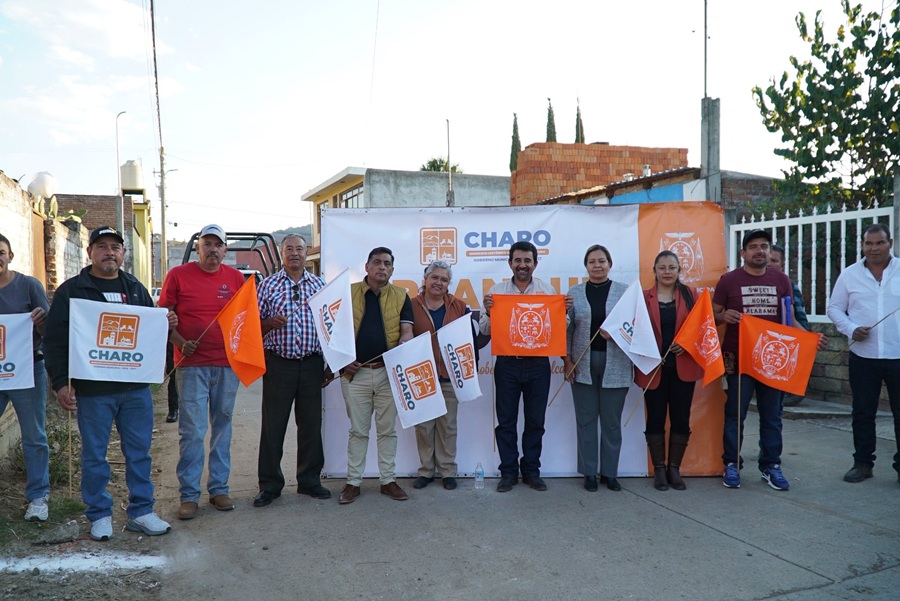 Junto con la Ing. Alejandra Calderón, presidenta honoraria del DIF Municipal de Charo, el alcalde Gabriel Molinero dio el banderazo de arranque de la pavimentación con concreto hidráulico, en una obra convenida con el gobierno del estado de Michoacán, que a través de la Secretaría de Comunicaciones y Obras Públicas (SCOP) otorgó 30 toneladas de cemento, mientras el resto de los materiales, maquinaria y mano de obra será costeada por el Ayuntamiento de Charo.