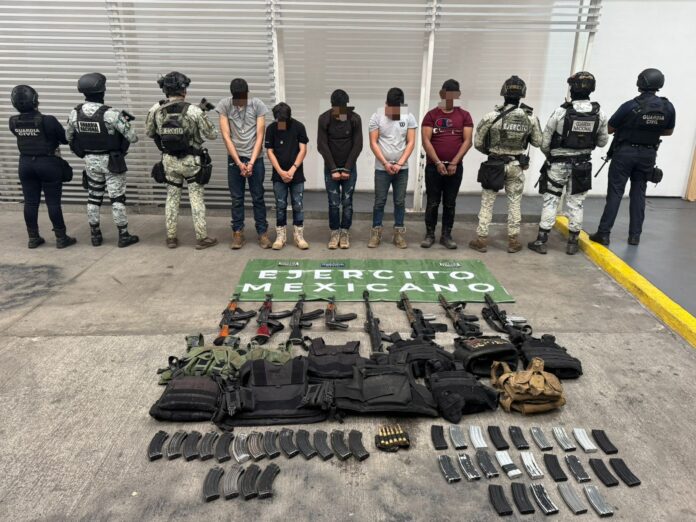 Labores para la disuasión del delito y el combate a las células delictivas de la región, permitió a los agentes de la Guardia Civil, el Ejército Mexicano y la Guardia Nacional, asegurar a los hombres en la localidad de San Miguel de las Lomas, quienes llevaban consigo ocho armas largas de distintos calibres, así como mil 167 cartuchos útiles, 77 cargadores, chalecos tácticos y cascos balísticos.