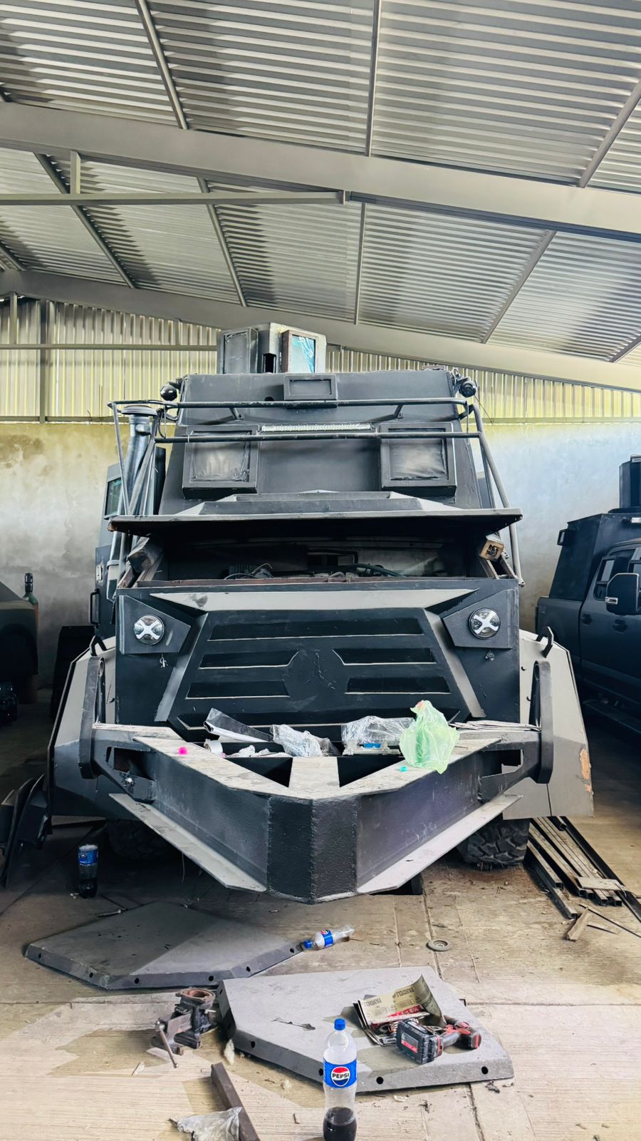 Los vehículos asegurados se encontraban en proceso de fabricación para ser equipados con un blindaje improvisado; todas las unidades junto con el narcótico incautado quedaron a disposición de la autoridad competente a efecto de dar continuidad a las investigaciones en curso.