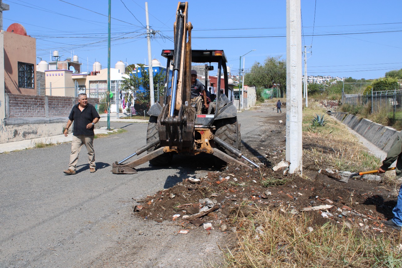 Por indicaciones del edil González Gutiérrez, y como parte del programa de Atención Ciudadana, que a través de una línea de WhatsApp se pueden realizar reportes al Ayuntamiento, el secretario de Servicios Públicos, Alejandro Olascoaga, junto con una brigada y vecinos, y el apoyo de una retroexcavadora se realizaron varias faenas de limpieza profunda en la calle Palermo en el fraccionamiento Metrópolis 2.