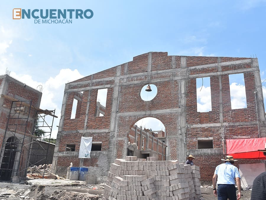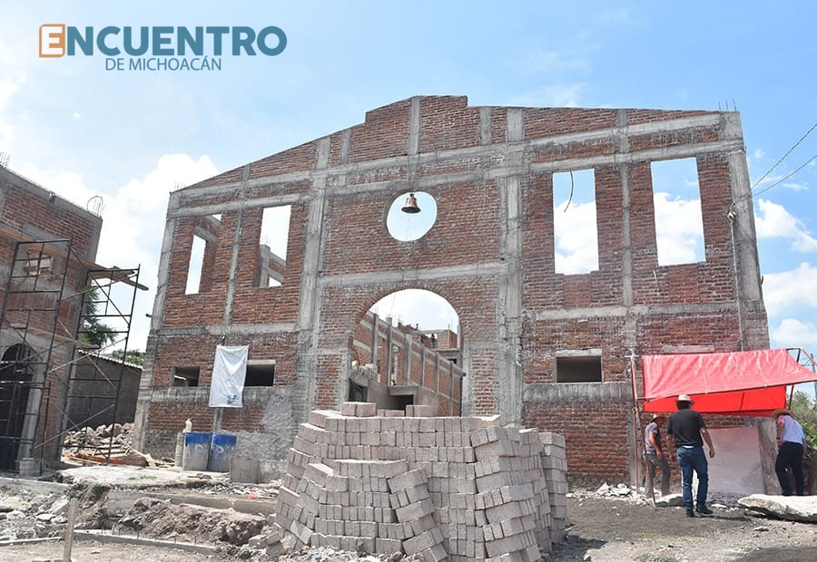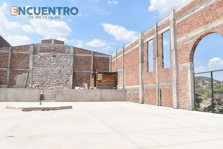 Luego de 25 años detenido el proyecto en esta comunidad del municipio de Huandacareo, el párroco Luis Daniel Rubio Morales lleva la obra entre un 20% y 30%, con sus bardas, el firme ya colocado, atrio, la construcción de la torre del campanario y los espacios para el altar.