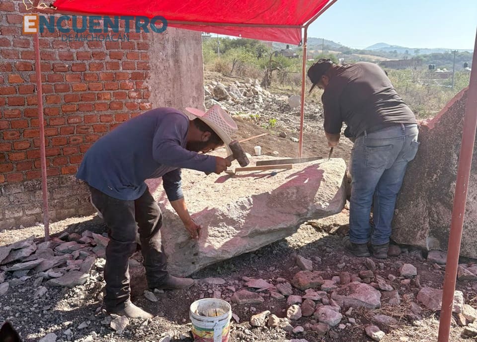 El maestro de obra, Miguel, detalló que además del atrio y la torre, se trabaja en el altar. La intención es tallar un San Jerónimo y el propio altar de una cantera extraída del mismo lugar, con un maestro cantero del oriente de Michoacán.