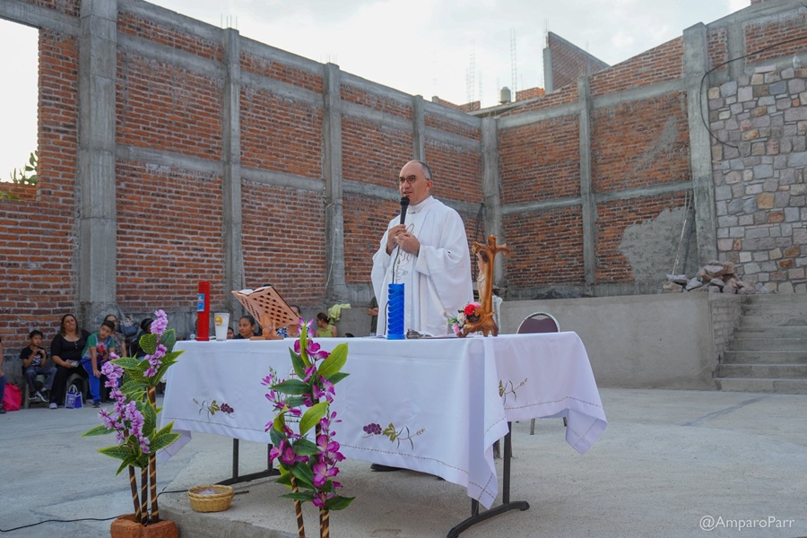 Mientras se construye, la feligresía ya se reúne todos los miércoles por la tarde para la celebración de la santa misa, oficiada por el padre Luis Daniel Rubio.