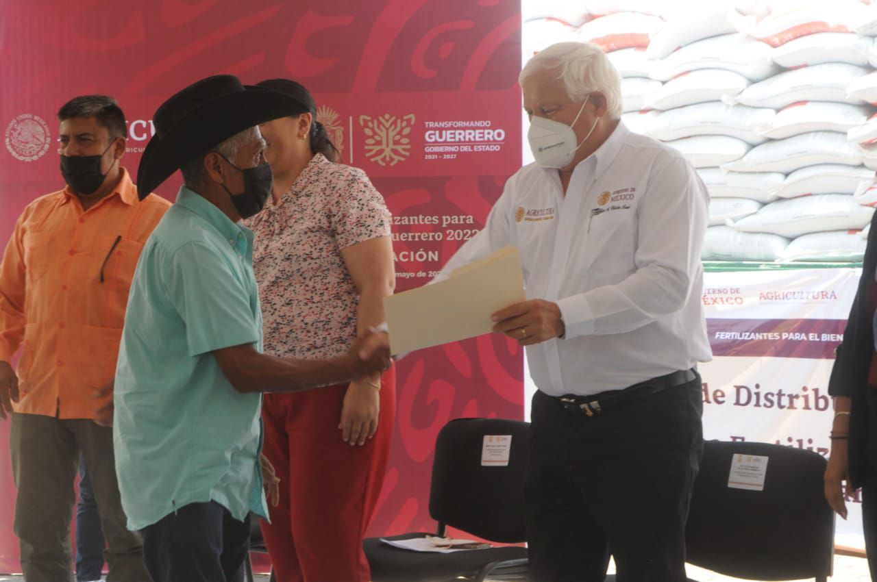 Durante el encuentro realizado en la Casa Guerrero, se entregaron de manera simbólica paquetes de fertilizante a los beneficiarios: Rosalía Abarca Rodríguez, de la región Centro, Mochitlán, Mochitlán, con dos hectáreas; Alfredo Manjarrez Castro, región Norte, Huitzuco de los Figueroa, Huitzuco, con dos hectáreas; Lucino Chávez López, región Costa Chica, Tecuanapa Buenavista, con dos hectáreas, y a Jorge Luna Sánchez, región Acapulco, Acapulco de Juárez, con una hectárea.