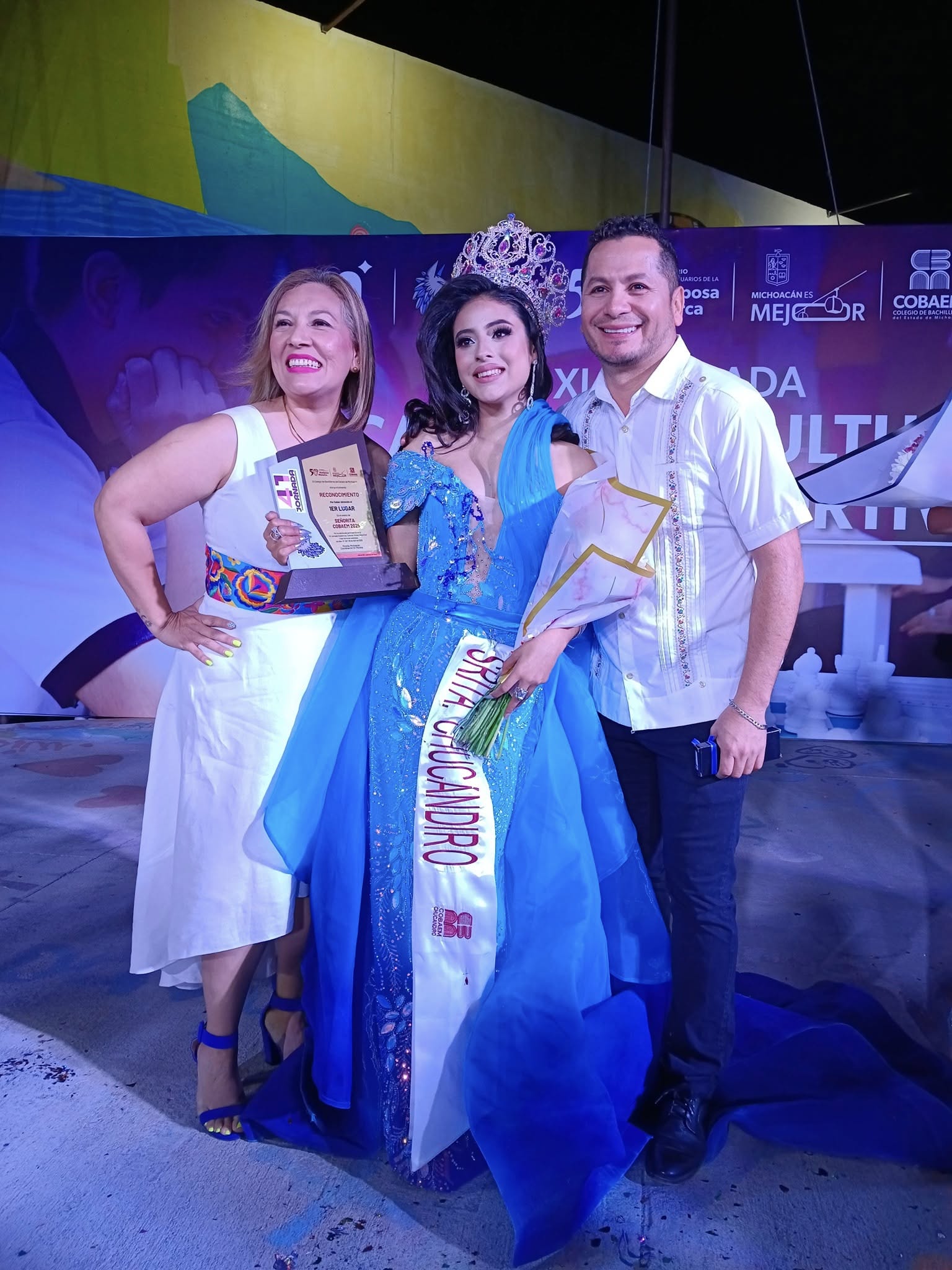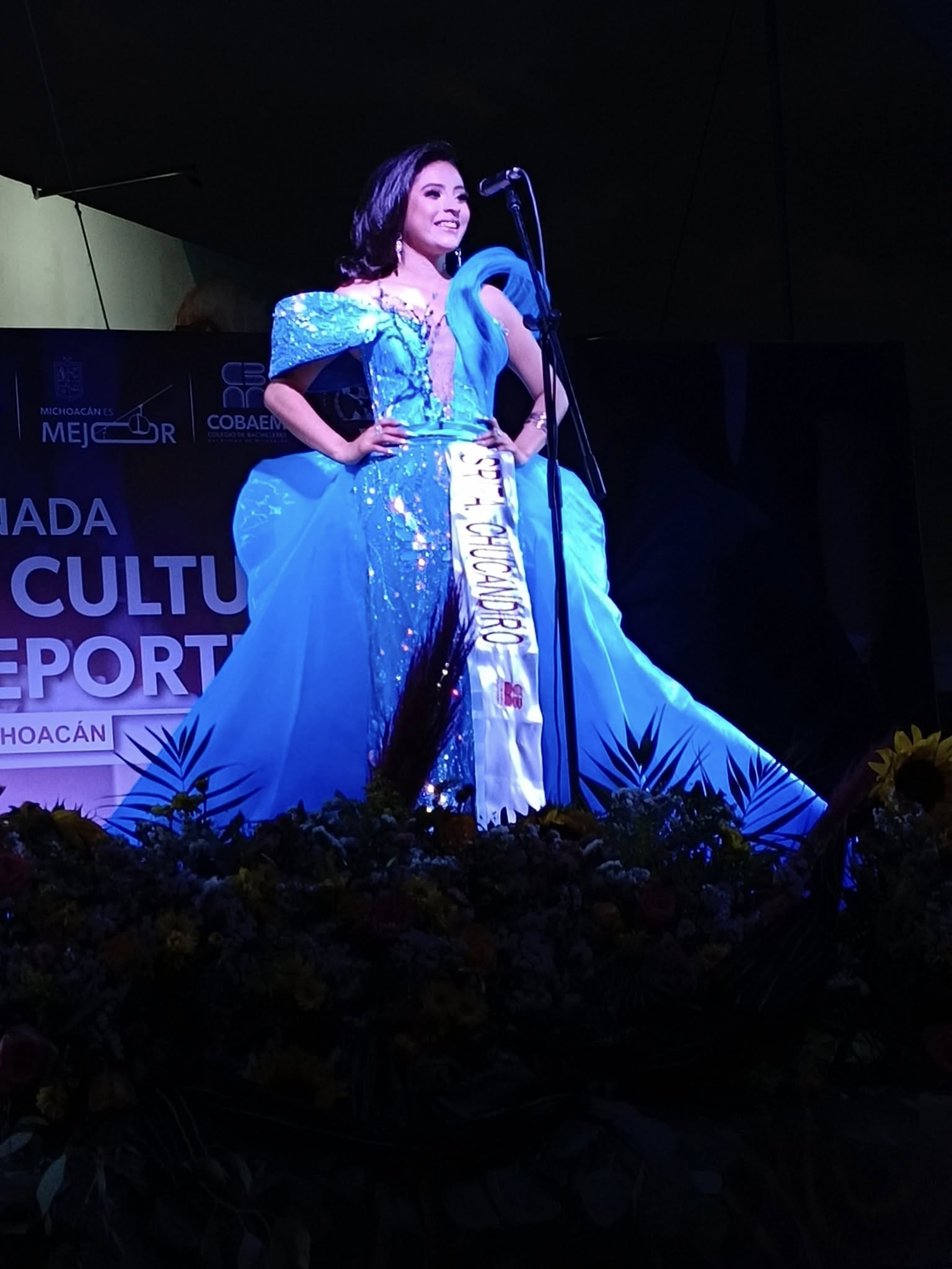 La alumna de tercer año, de 17 años de edad, ya había participado en ediciones anteriores en danza y baile; ahora se perfila para continuar sus estudios profesionales en la carrera de psicología. El segundo lugar del certamen de belleza fue para Elizabeth Cornejo Escutia, del Plantel Cuitzeo,