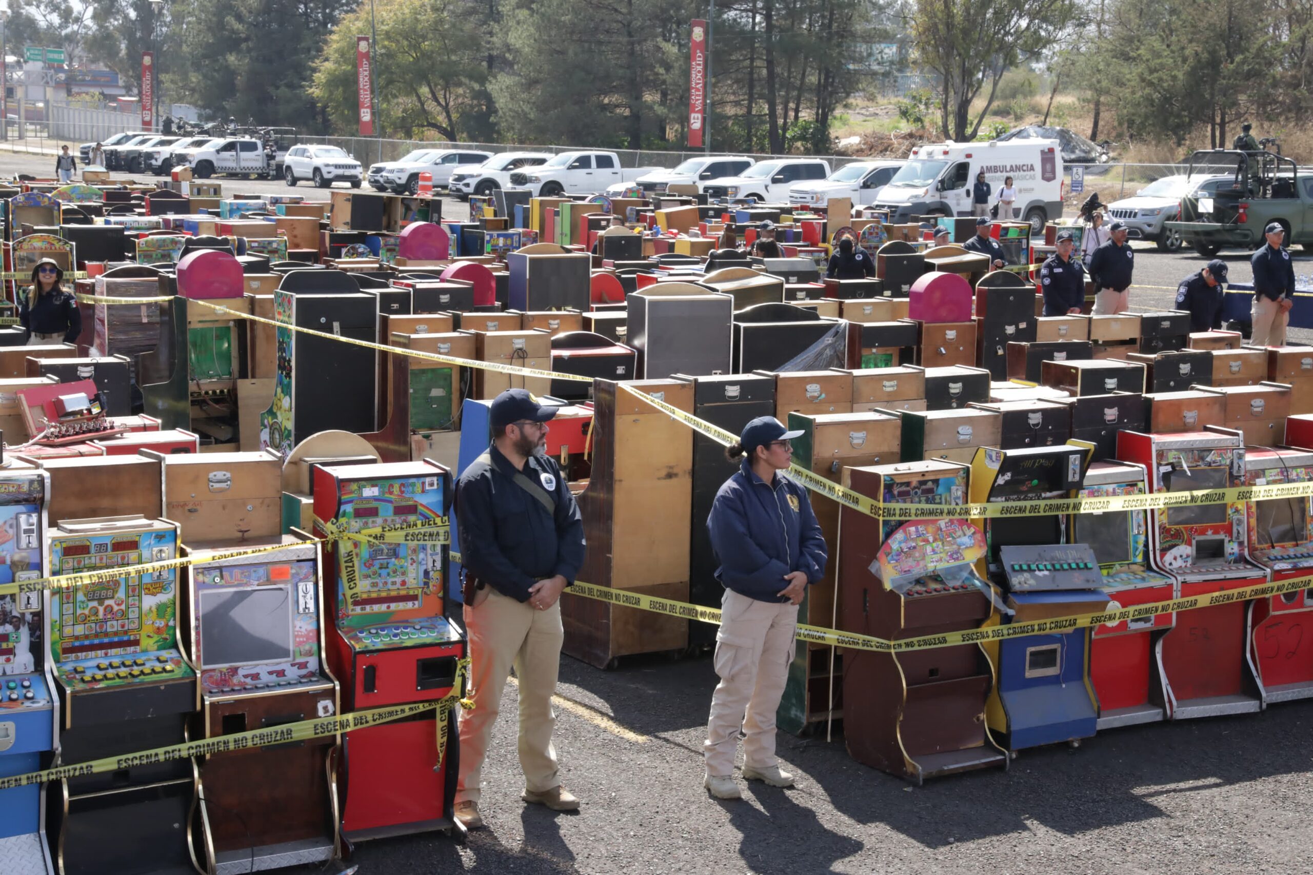 Mientras que el secretario de Seguridad Pública, Juan Carlos Oseguera Cortés, refirió que las máquinas tragamonedas se han convertido en un peligro evidente para la seguridad y el bienestar de la población porque fomentan la adicción y la delincuencia, ya que enganchan silenciosamente a niñas, niños, adolescentes y jóvenes para enseguida impulsarlos a robar, estafar o a vender cosas ilícitas.