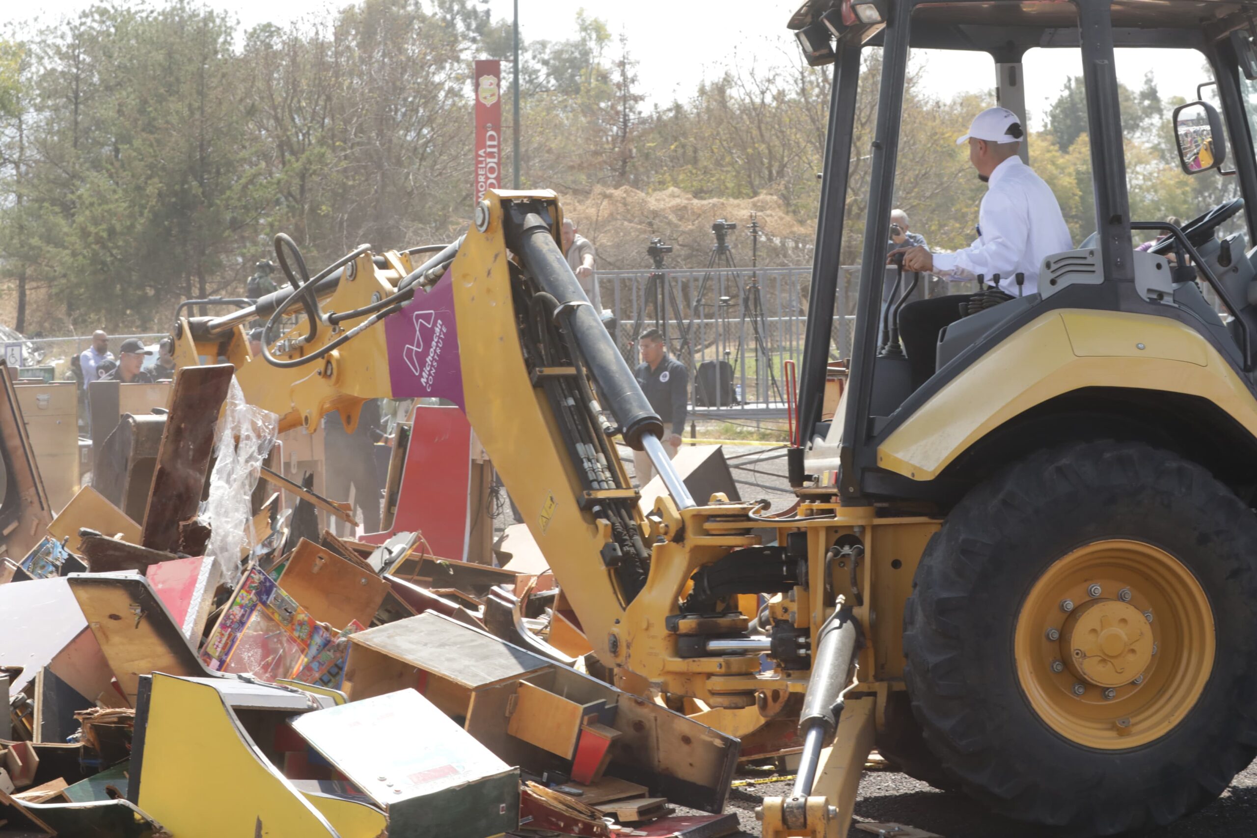 El gobernador Alfredo Ramírez Bedolla dio arranque a la destrucción masiva de maquinitas tragamonedas decomisadas en tiendas y minicasinos de Morelia, Uruapan, Zitácuaro, Zamora, Lázaro Cárdenas, Apatzingán y Maravatío.