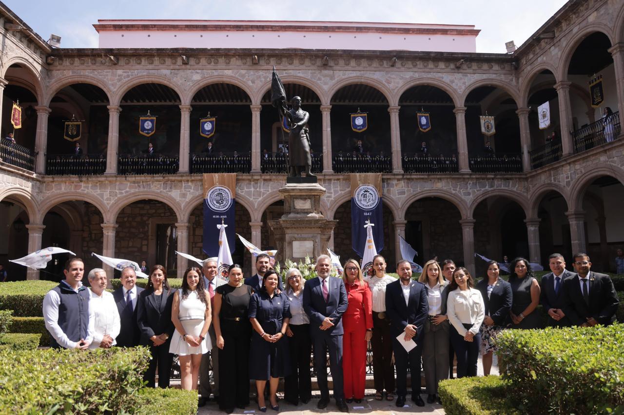 El gobernador resaltó en su mensaje que hoy la Universidad Michoacana lleva con orgullo el nombre de Hidalgo, convirtiéndose en heredera de su espíritu donde no solo se forman profesionistas, sino mujeres y hombres activos y conscientes de su responsabilidad histórica.