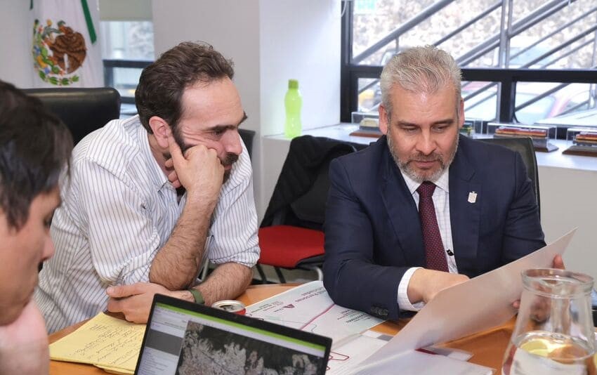 El gobernador Alfredo Ramírez Bedolla y el director general de la Agencia Reguladora de Transporte Ferroviario, Andrés Lajous Loaeza, revisaron la viabilidad del proyecto que impulsa la administración estatal para construir y operar un metrobús en Morelia.