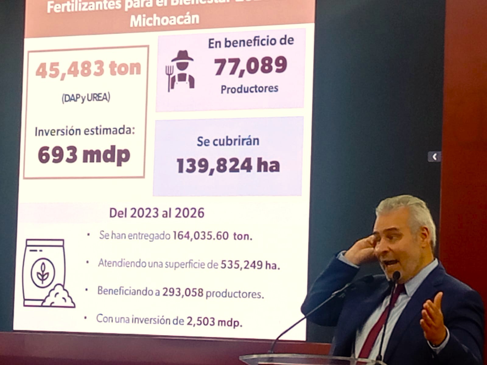 Durante la conferencia de prensa, el titular del Ejecutivo marcó una clara distinción entre los programas vigentes. Por un lado, resaltó el respaldo histórico a los 77 mil pequeños productores —aquellos con menos de cinco hectáreas— quienes reciben de manera gratuita más de 45 mil toneladas de fertilizantes (DAP y Urea), lo que representa una inversión estatal y federal superior a los 638 millones de pesos. A este sector se le garantiza además el Precio de Garantía de 7 mil 200 pesos por tonelada, asegurando que el eslabón más vulnerable de la cadena productiva tenga certidumbre económica y herramientas para trabajar sus tierras.