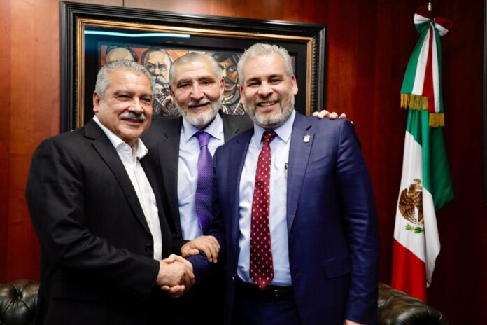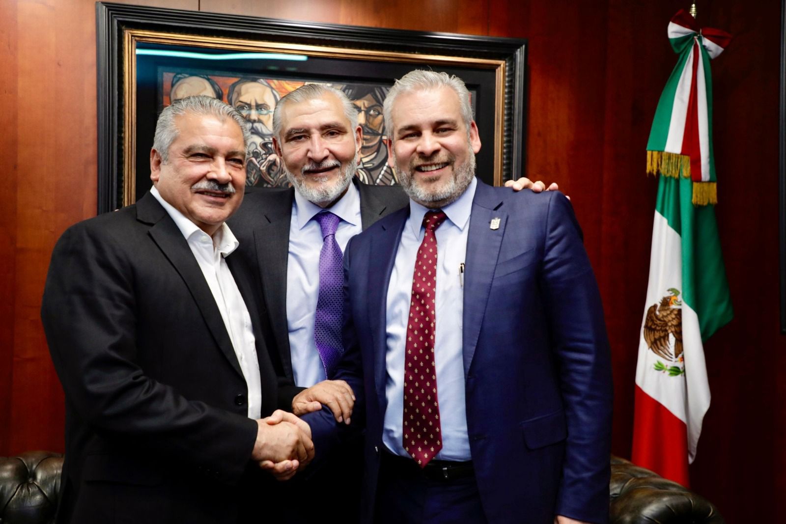 Ciudad de México.- El gobernador Alfredo Ramírez Bedolla, el presidente de la Junta de Coordinación Política de la Cámara de Senadores, Adán Augusto López Hernández y el senador Raúl Morón Orozco acordaron respaldar las iniciativas de reforma constitucional de no reelección y nepotismo electoral, propuestas por la presidenta Claudia Sheinbaum Pardo.