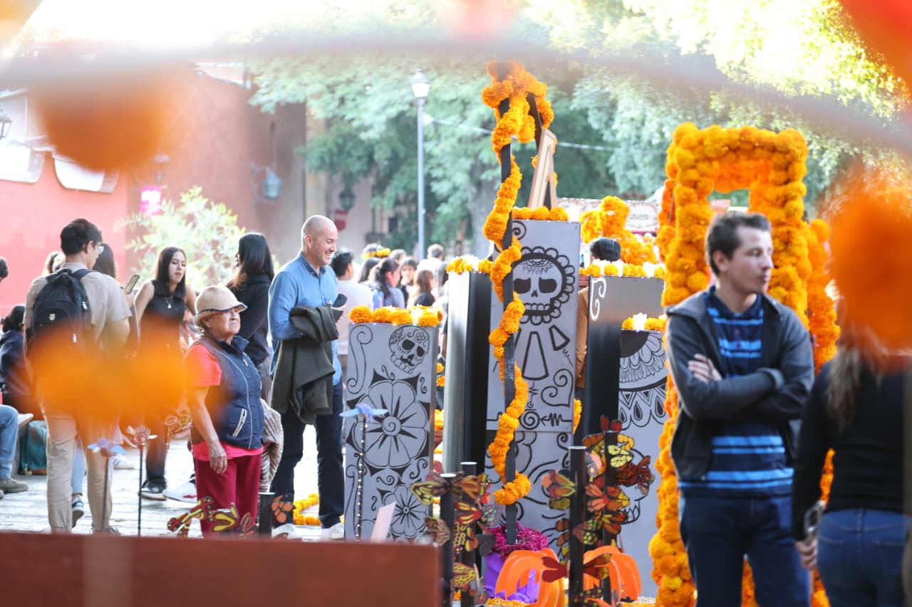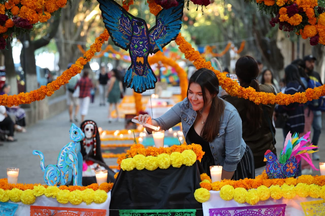 Calzada San Diego, Villalongín y plaza Jardín Morelos, deslumbran con altares y tapetes del Día de Muertos
