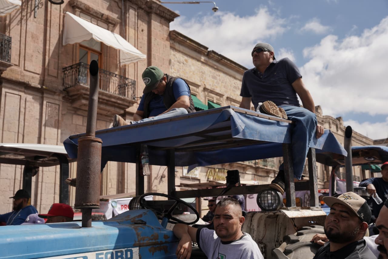 Este martes por la mañana, un desfile inusual y cargado de demandas irrumpió en el Centro Histórico: decenas de campesinos en tractores, acompañados por mujeres, niños, hombres y jóvenes a pie, avanzaron desde la salida Charo y distintas rutas periféricas de Morelia hasta concentrarse frente al Palacio de Gobierno, ondeando pancartas y entonando consignas como “Sin maíz no hay país”.