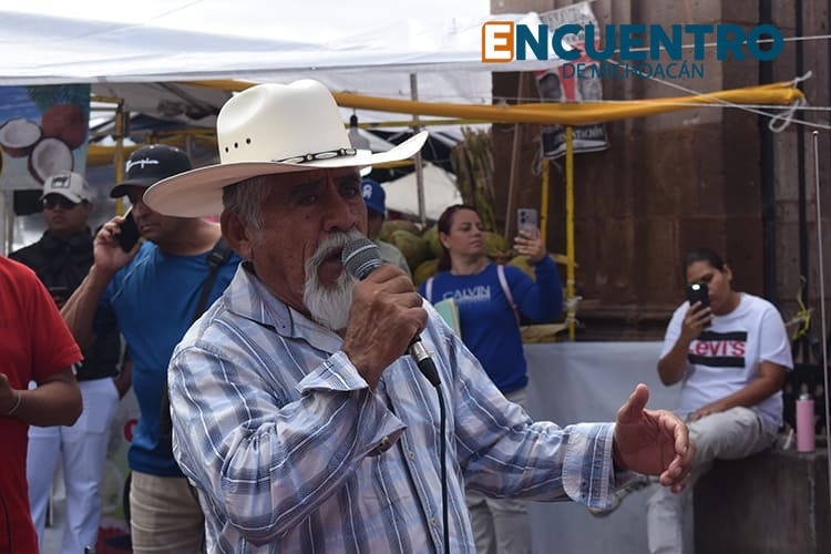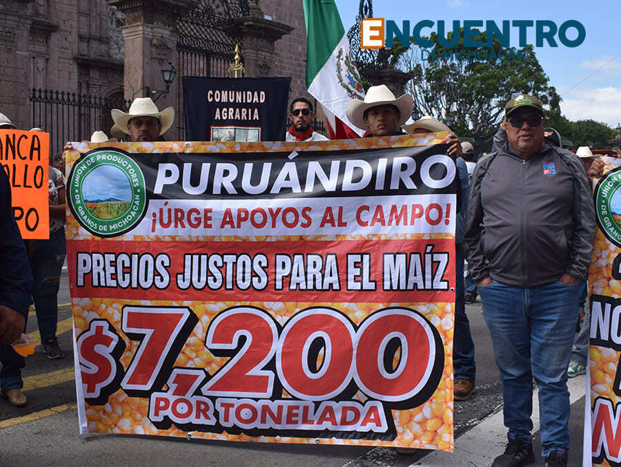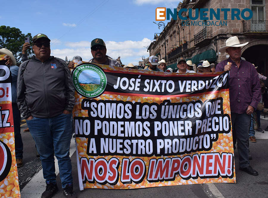 Al micrófono expusieron sus demandas productores como Alejandro “Güero” Gámez, de la organización Productores de Granos Básicos de Michoacán, y Francisco Aguíñiga, del Colectivo Campesino por Michoacán; Ismael del Toro, representante del Sistema Producto Maíz en Michoacán; así como campesinos y comisariados ejidales como Don Miguel López, de San Bartolomé Coro, en Zinapécuaro; Doña Juanita, de la Estación Queréndaro; o don Roberto, productor que tomó el micrófono y destacó la participación de muchos jóvenes en la protesta campesina, a quienes pidió acompañar siempre las luchas de sus padres y abuelos productores. Todos ellos, con una petición en común: un precio justo para el maíz, que el gobierno establezca un precio de garantía de al menos 7,200 pesos la tonelada.