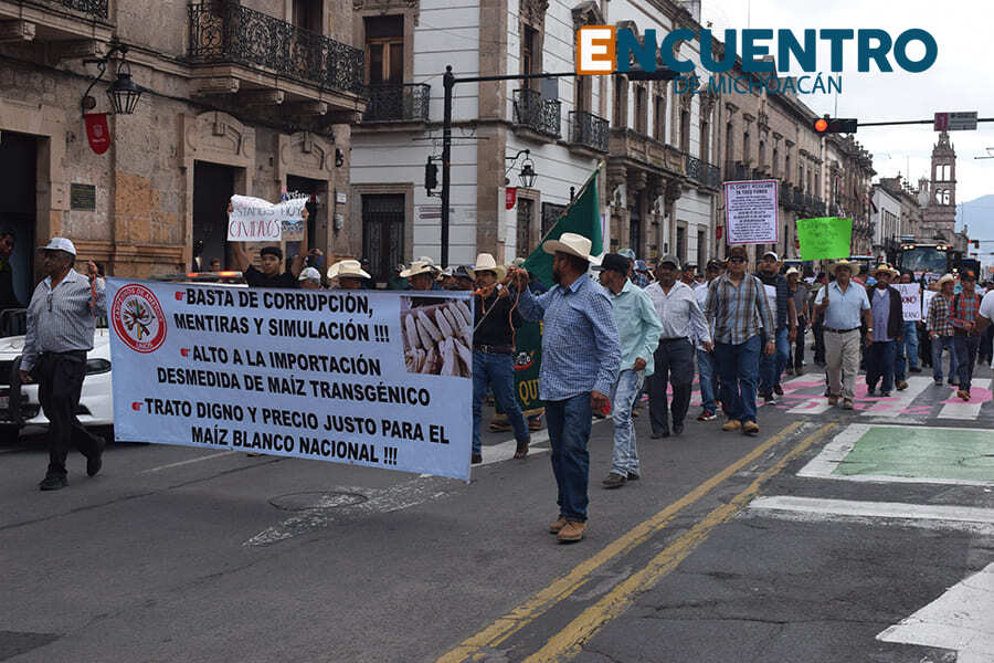 Con el tiempo encima ante la temporada de cosecha en puerta y en demanda de un precio justo para el maíz, productores de Michoacán se sumaron en Morelia al Paro Nacional por la Defensa del Campo que se celebró en 25 estados de México y que a pie y en sus tractores en la capital michoacana llegaron a Palacio de Gobierno gritando consignas como: “Sin maíz no hay país”, “Queremos producir, no sobrevivir”, “Somos hijos del maíz, granos de una misma mazorca” y la más importante: “Precios justos para el maíz”.