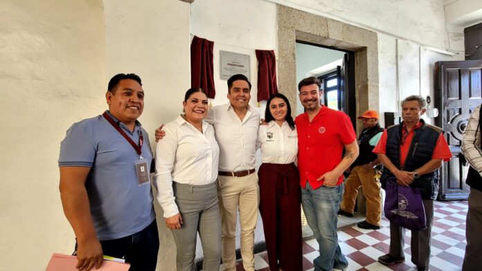 El alcalde Jordán Reyes junto con Héctor Javier Morales, Jefe de la Jurisdicción Sanitaria 1 Morelia y representante del titular de Salud, Lázaro Cortés Rangel, develó una placa instalada a un costado del acceso principal al Ayuntamiento.
