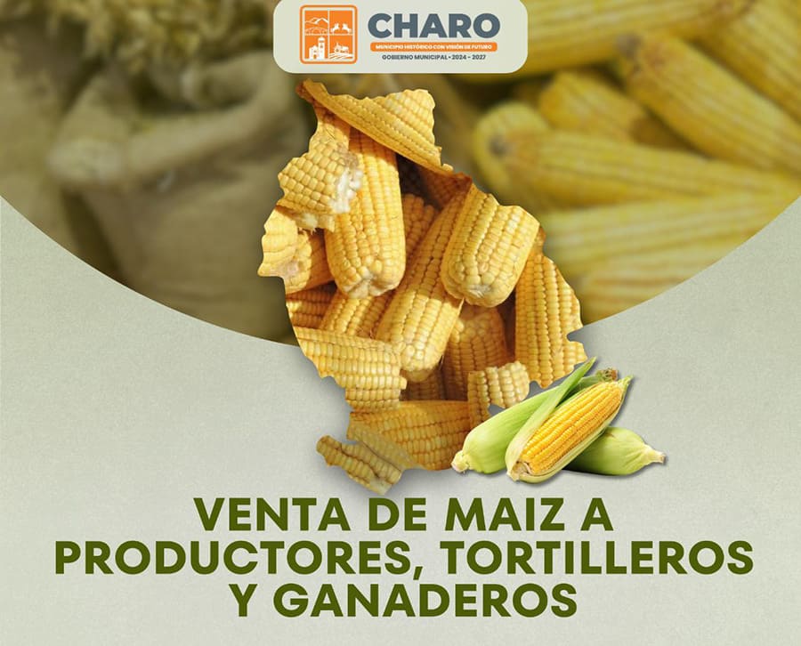 “El Gobierno Municipal de Charo, que preside con orgullo nuestro presidente municipal Gabriel Molinero, informa a los productores de maíz del municipio que, en Sesión de Cabildo, ha sido autorizada la compra de 200 toneladas adicionales como apoyo directo al sector productivo, reafirmando nuestro compromiso con el campo charense. Invitamos a las y los productores interesados a acudir para mayor información al Palacio Municipal o a la Bodega del Ayuntamiento”, informó el gobierno que encabeza Gabriel Molinero.