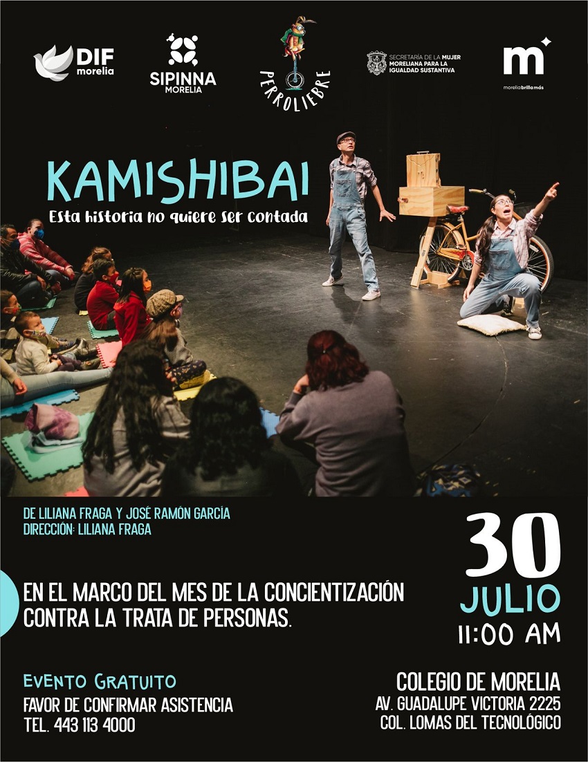 El DIF Morelia encabezado por su presidenta honoraria, Paola Delgadillo Hernández, presentará este 30 de julio la obra “Kamishibai: Esta historia no quiere ser contada”, una propuesta escénica dirigida a niñas, niños y sus familias como parte de la campaña municipal “¿De qué trata la trata?”.