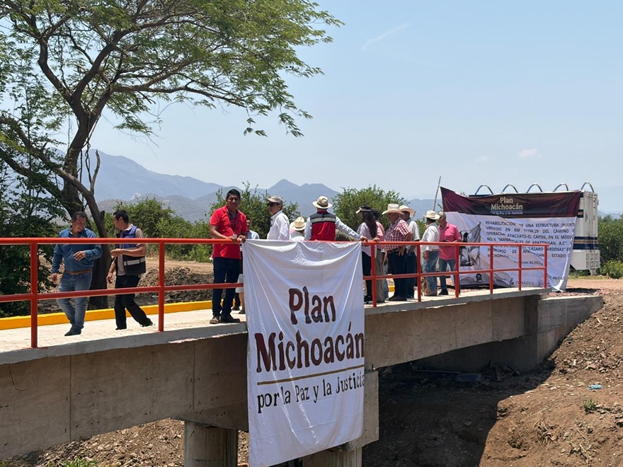 La Comisión Nacional del Agua (Conagua), a través de su delegación en Michoacán, rehabilitó un puente clave para el sector agrícola, ubicado en el camino de operación Ayacuato-El Capire, dentro del módulo 06 “Manantiales de Apatzingán A.C.”, perteneciente al distrito de riego 097 “Lázaro Cárdenas”, en Apatzingán, como parte de las acciones del Plan Michoacán por la Paz y la Justicia.