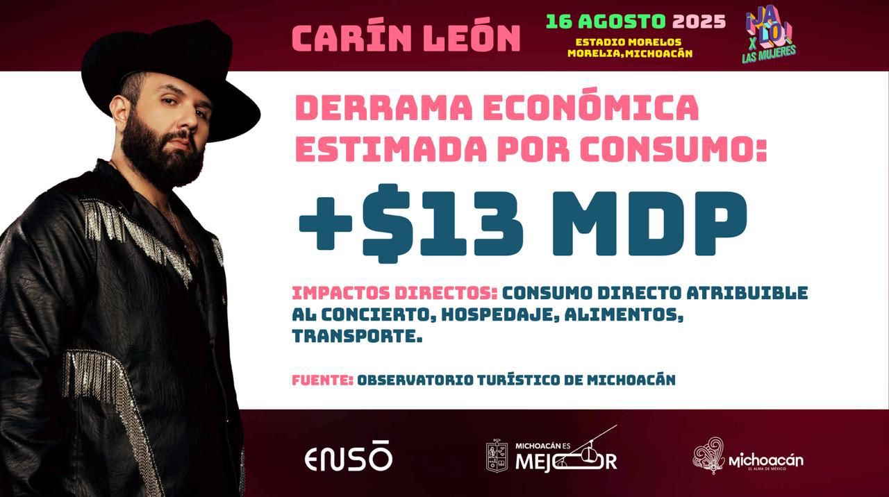 El concierto de Carín León en Morelia no solo será un evento musical, sino también una iniciativa que impulsará la economía local y fortalecerá el apoyo a las mujeres en la entidad. El gobernador Alfredo Ramírez Bedolla anunció que se espera una derrama económica superior a los 13 millones de pesos en la capital michoacana, proveniente de hospedaje, alimentos y transporte.