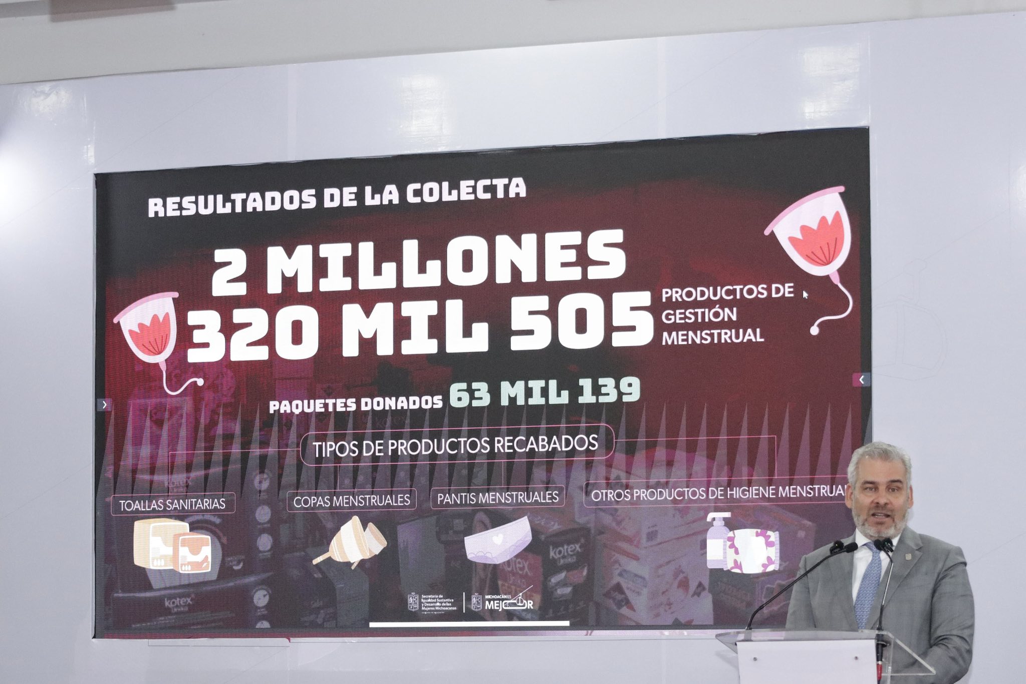 La campaña superó su meta, logrando recolectar más de 2.3 millones de productos de gestión menstrual. Estos productos, equivalentes a más de 63 mil paquetes, beneficiarán a más de 100 mil niñas y mujeres en el estado.