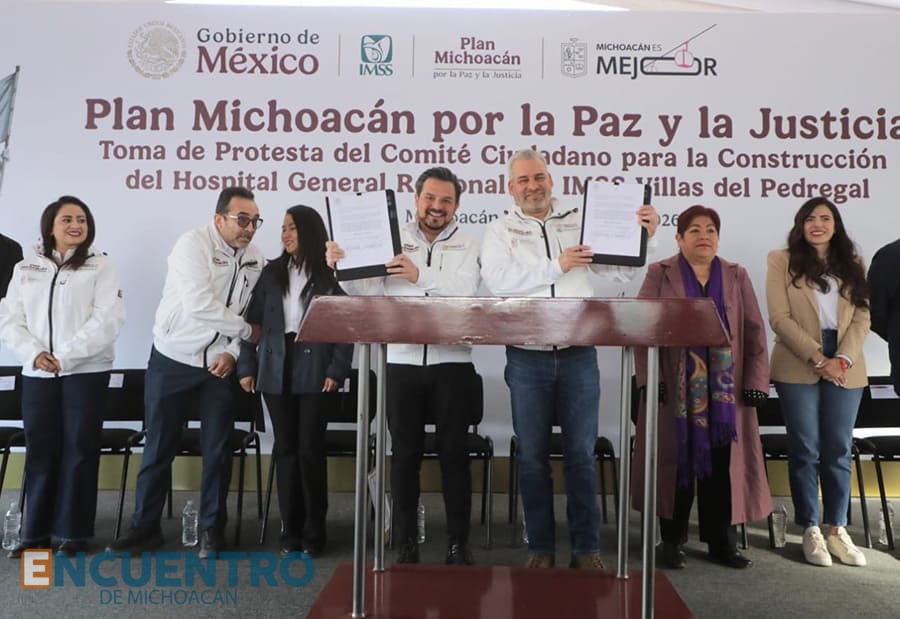 Con la conformación del Comité Ciudadano, se da un paso decisivo para garantizar la transparencia y el seguimiento de esta obra histórica para el poniente de Morelia, destacaron el gobernador Alfredo Ramírez Bedolla y el director general del IMSS, Zoé Robledo, al tomar protesta al Comité Ciudadano del Hospital General de Especialidades de Villas del Pedregal.