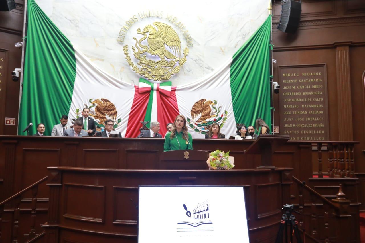 Al abordar la Tribuna, la diputada Sandra María Arreola Ruíz, destacó la importancia del acto en el que el Congreso del Estado entrega una de sus más altas distinciones, a una institución que encarna la vocación de servicio, la honestidad profesional y la defensa del Estado de Derecho.