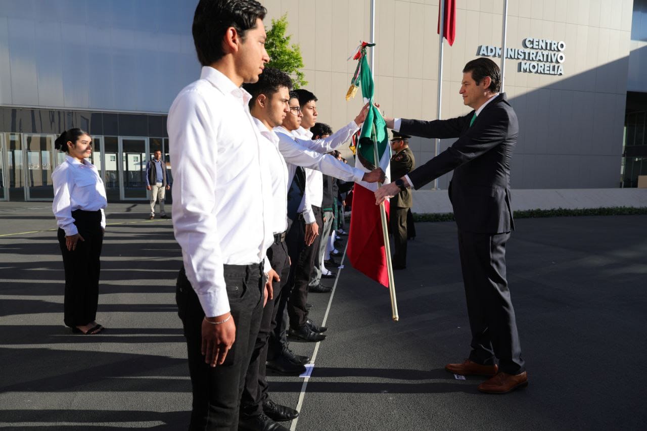 Posteriormente, el presidente municipal de Morelia, Alfonso Martínez Alcázar, abanderó a diferentes instituciones educativas de los tres niveles educativos.