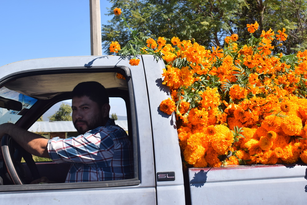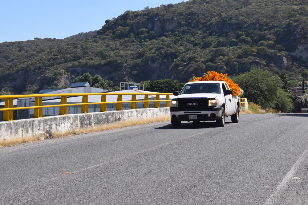 Las camionetas cargadas de flor son una constante provenientes de cada rincón de la geografía michoacana, arriban con un solo objetivo: llevar la preciada flor que adornará panteones y vestirá ofrendas, cumpliendo con el ritual ancestral de dar la bienvenida a los seres queridos.