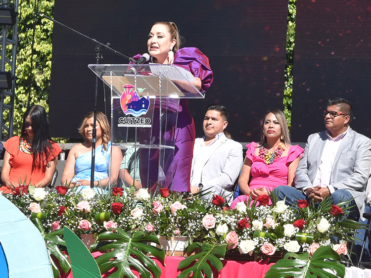 Antes de la presentación de la Danza de los Diablitos de San Juan Tararameo y de los niños del ballet folclórico de la Casa de la Cultura y el Artesano de Cuitzeo, la alcaldesa destacó el compromiso de su administración para seguir impulsando el desarrollo social, económico y turístico de Cuitzeo.