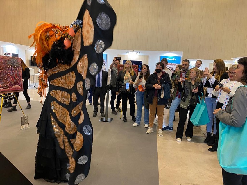 La “Catrina Monarca” recorre el Auditorio del Centro de Convenciones Internacional de Barcelona, mientras brinda información, datos curiosos, historias y leyendas de Michoacán.