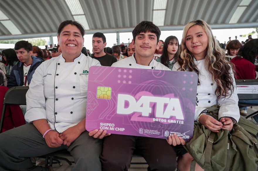 En la Universidad Tecnológica de Morelia (UTM), el gobernador Alfredo Ramírez Bedolla llamó a estudiantes de preparatorias, institutos tecnológicos y universidades públicas de todo el estado a que aprovechen los últimos días de registro al Programa Data, que les ofrecerá 4GB de internet gratuito al mes con acceso a redes sociales, mensajes y llamadas ilimitadas, para fortalecer su formación académica.