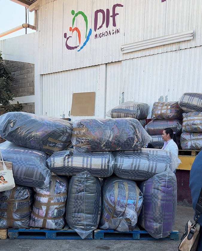 La importante donación de cobijas se realizó en las instalaciones del almacén del Sistema DIF Michoacán en la capital del estado y las titulares del DIF Municipal de Indaparapeo agradecieron el respaldo y que se haya incluido a las familias vulnerables del municipio para ser beneficiarias de este apoyo en esta temporada invernal.