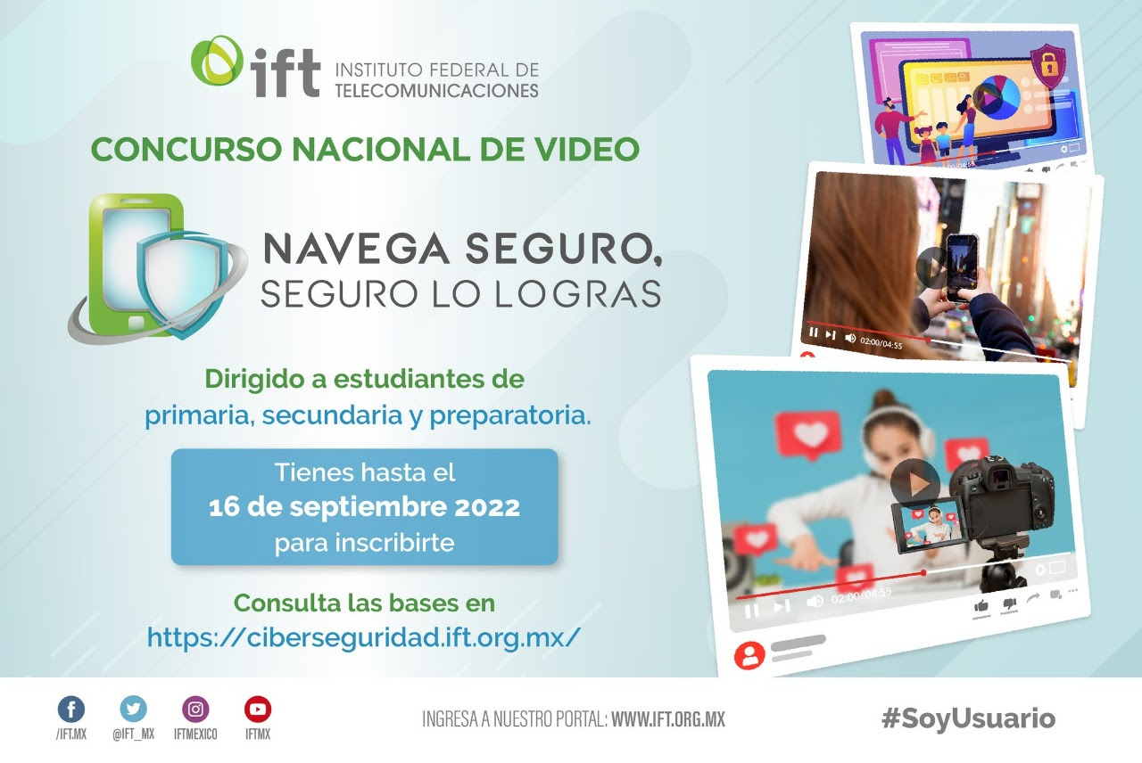 Atendiendo el compromiso de incorporar los programas federales y fomentar la participación ciudadana, el Sistema para el Desarrollo Integral de la Familia (DIF), encabezado por la presidenta honoraria, Grisel Tello Pimentel, invita a todos los niños, niñas y adolescentes a participar en el concurso nacional de video “Navega seguro, seguro lo logras” del Instituto Federal de Telecomunicaciones (IFT).
