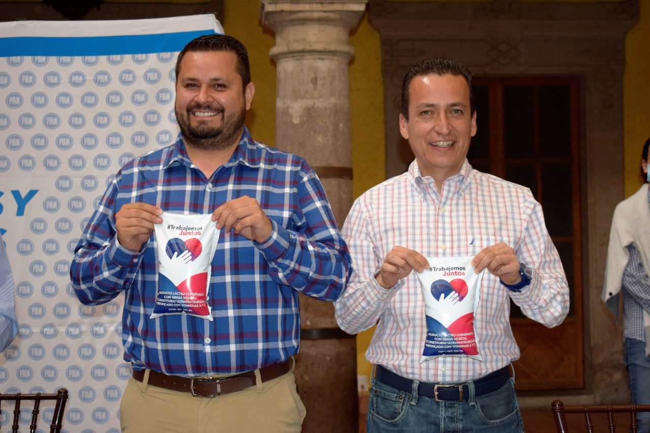 En conferencia de prensa, diputados de la fracción parlamentaria del PAN en San Lázaro anunciaron la implementación del programa “Trabajemos Juntos” en beneficio de las familias michoacanas, distribuyendo 23 mil 64 litros de leche y grasa vegetal con el mismo nombre, apoyo en aparatos auditivos y operaciones de cataratas, paquetes alimentarios y el programa de mastografías, que hace más de una década implementó Acción Nacional.