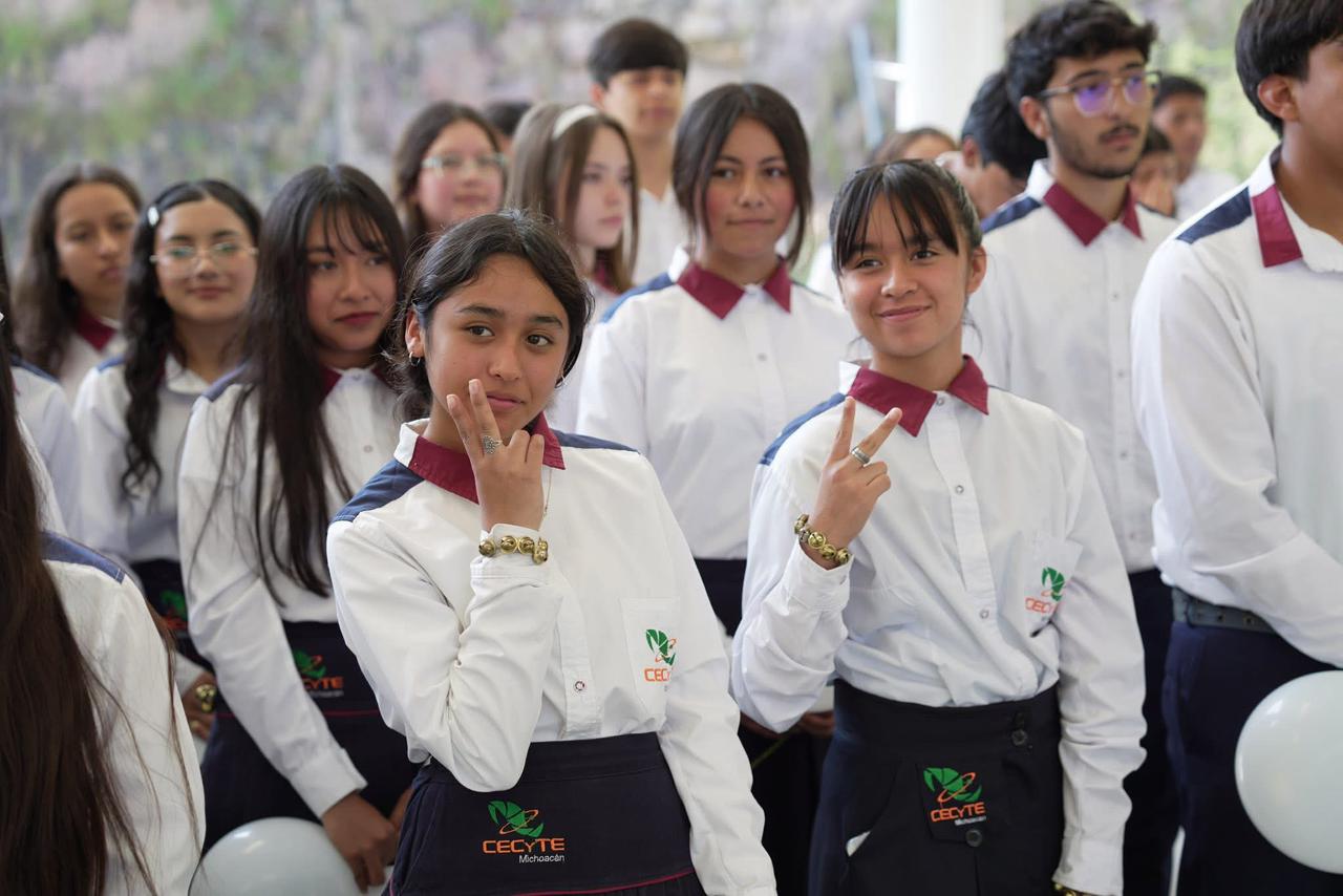 Durante la ceremonia, la directora General del Instituto de Educación Media Superior y Superior de Michoacán, Mariana Sosa Olmeda hizo un importante anuncio que beneficiará directamente a los más de 400 estudiantes del plantel.