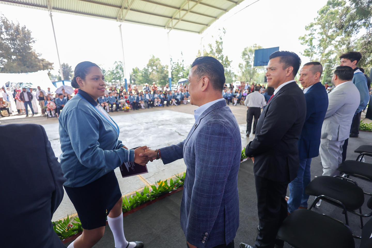 “Seguimos apostando a la educación como motor de la transformación”, afirmó Torres Piña, agradeciendo al director del plantel, Irvin Coria, por la invitación a este significativo evento. También estuvo presente el presidente municipal de Morelos, Julio César Conejo Alejos, acompañando a los jóvenes en este importante paso.