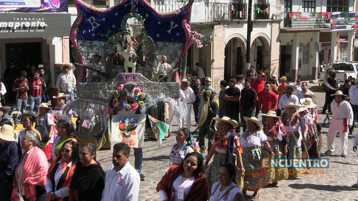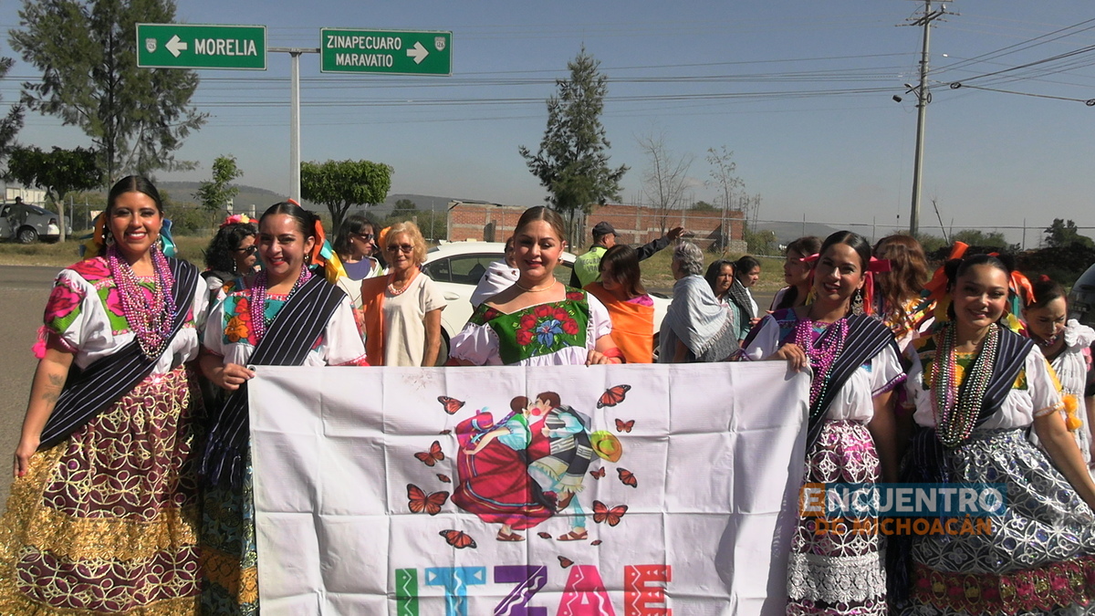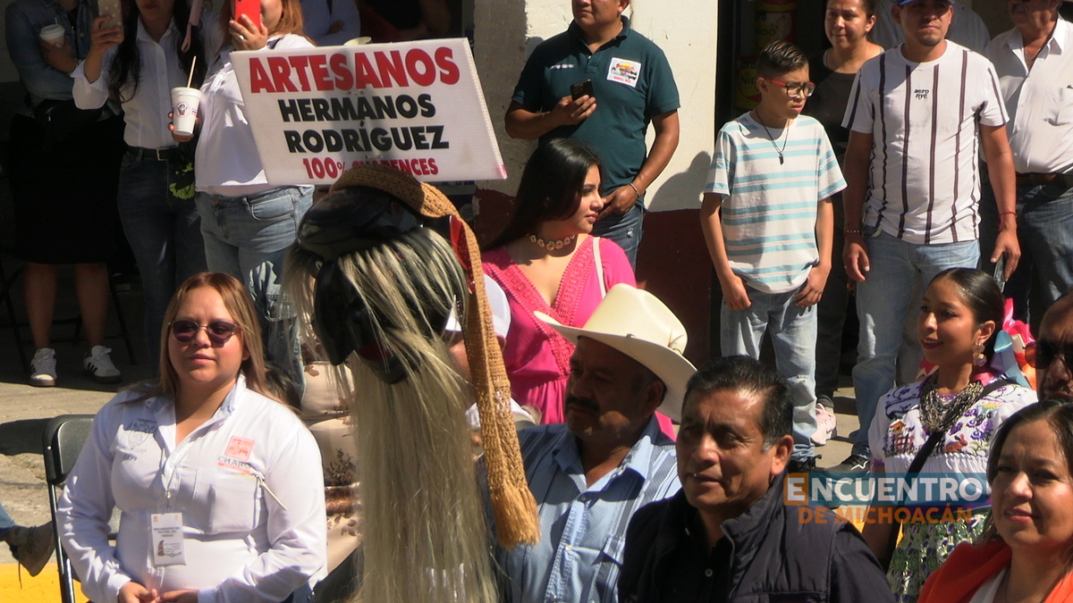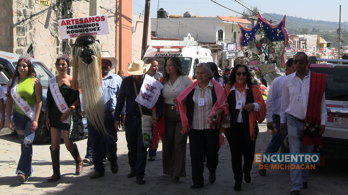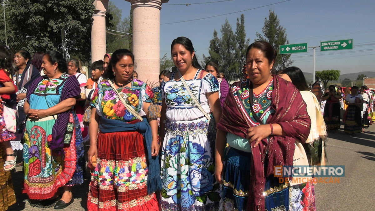 Las artesanas y grupos folclóricos de la Meseta Purépecha, encabezados por la Banda Sinfónica de Ihuatzio desfilaron por las calles de Charo en una pasarela de historia viva que culminó en el atrio del ex Convento de San Miguel Arcángel, donde este 19 y 20 de octubre se lleva a cabo la exposición y venta de rebozos.