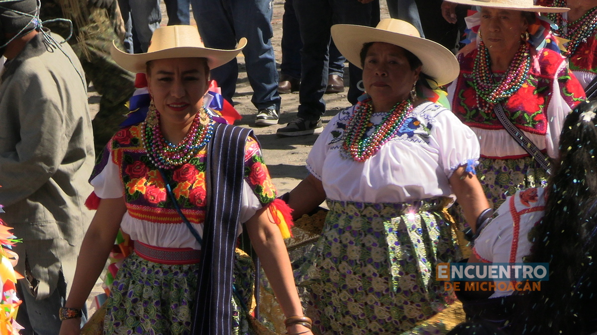 Con una dignidad que emocionaba, las mujeres purépechas desfilaron portando con orgullo sus rebozos de múltiples colores, un verdadero arcoíris tejido con hilos de algodón y seda.