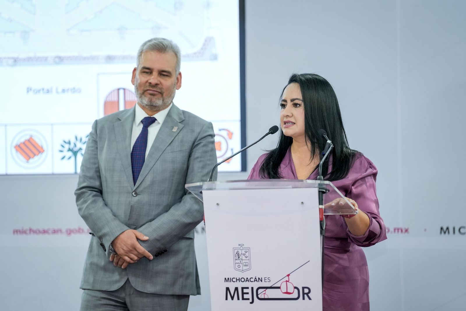 En rueda de prensa, acompañada del gobernador Alfredo Ramírez Bedolla, la funcionaria detalló el proyecto para la llamada plaza chica, que incluirá iluminación escénica y un sistema de riego automatizado.